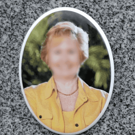 Process: A ceramic plaque printed with the photo is created and then embedded into the tombstone.