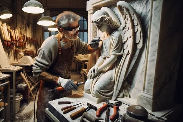 Our skilled craftsmen begin the hand carving process, transforming solid slabs of marble into beautiful and intricate memorials.